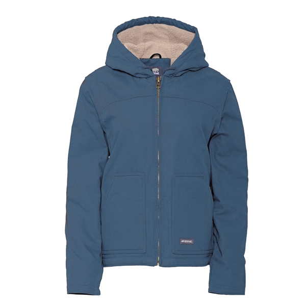 Stay warm and comfortable with the Berne Apparel Women's Sherpa-Lined Softstone Duck Hooded Jacket.