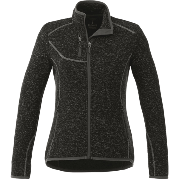 With its eye-catching heather knit design, the Tremblant Full Zip Sweater Knit has the cozy look of a well-worn sweater – but it's got some great functional design features, too, like thumb exits in the sleeves, two lower pockets, one upper chest pocket and an exit port for an earbud cord.
