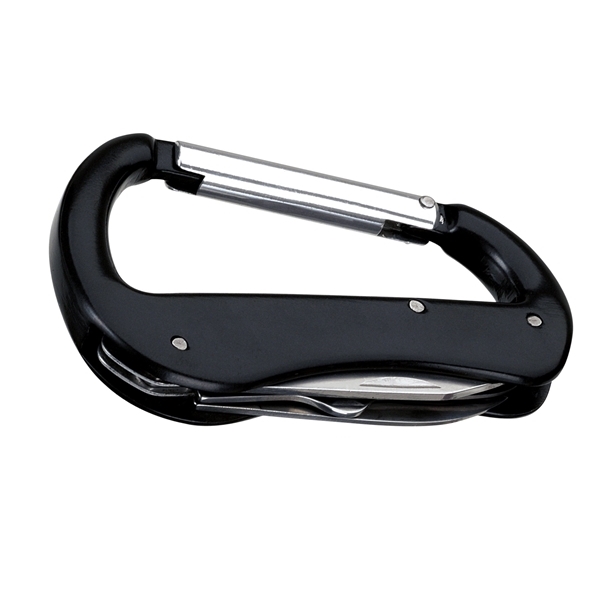 Keep your logo handy in a pinch - this carabiner features a pocket knife, fold-away scissors and screwdriver/nail file. Perfect for outdoor events.