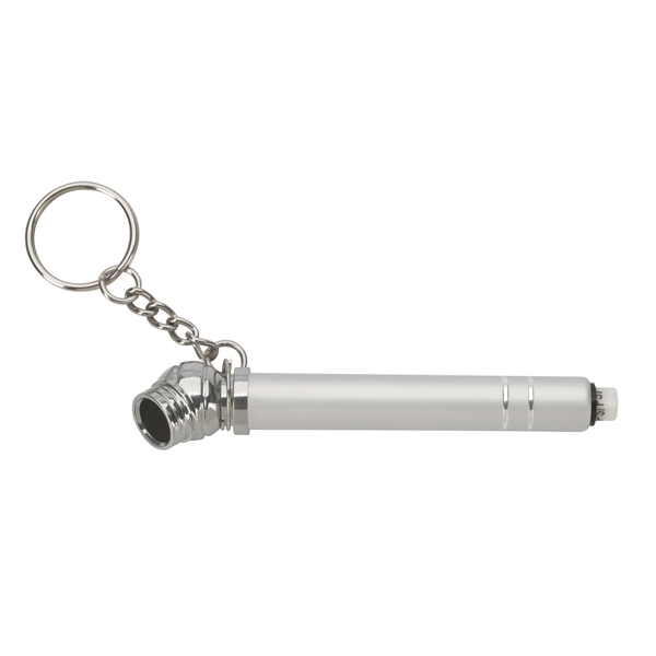 A mini tire pressure gauge and key ring all in one! This versatile, compact product helps you keep your tires properly inflated, which can improve gas mileage. The pressure gauge measures up to 50 PSI.