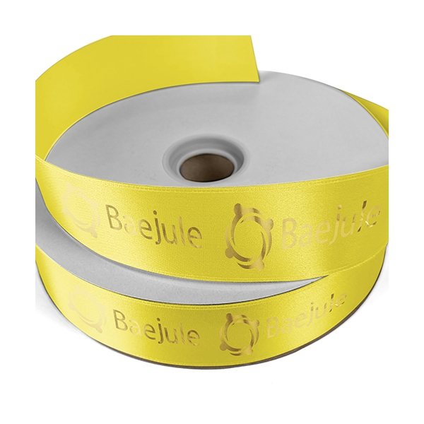 Ribbon can be personalized with text or a logo and can be turned into bows with an adhesive peel-and-stick back.
