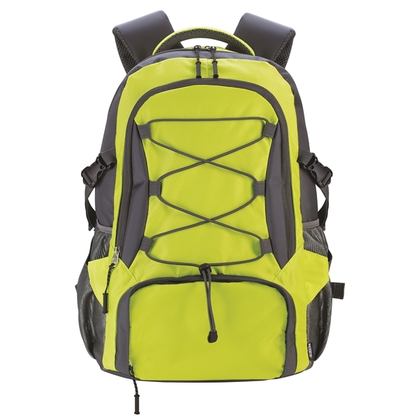 This outdoor backpack comes with all the bells and whistles. With multiple zippered pockets and the bungee cord feature, you can pack all of your necessities for the day!