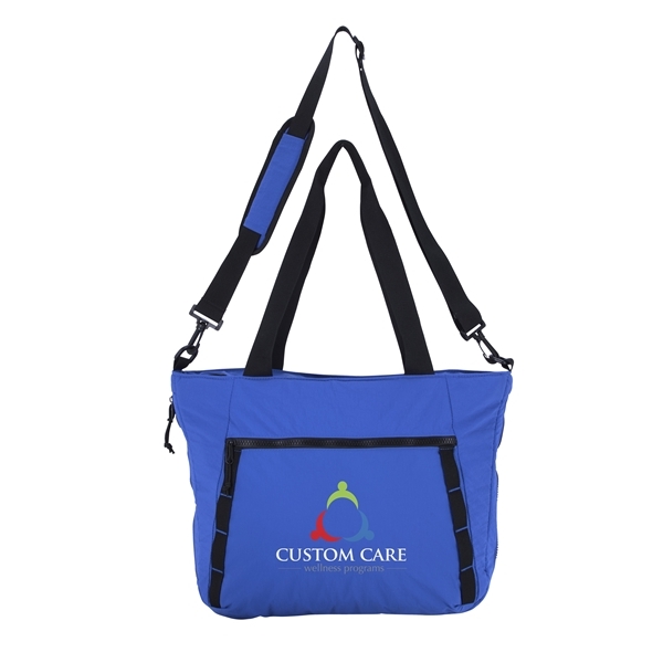 This recycled nylon cooler tote delivers flexible capacity for any outing, expanding from a 24-can to a 36-can load as needed. A front zippered pocket keeps small essentials organized, while exterior daisy chains offer convenient attachment points for gear. The removable, adjustable padded shoulder strap provides versatile, comfortable carry from tailgates to weekends away. Outer fabric made with 100% recycled 230T nylon outer fabric and webbing strap and handles made with 100% RPET.