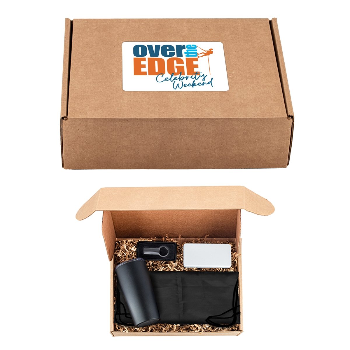 Gift Set Includes: "Columbia" 20 oz Tumbler, "Powervault" 10,000 mAh Power Bank, "Geneva" Metal Keyholder, "Ventoux" Drawstring Cinch Pack Backpack