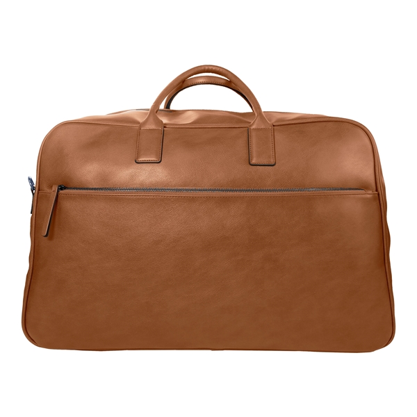 Made with recycled PU, this duffle includes a removable padded crossbody strap, trolley sleeve, and organized interior compartments.