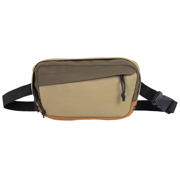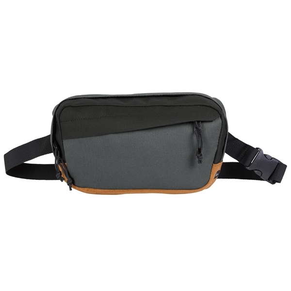 This two-tone trendy fanny pack with suede trim is the right size for holding all your essentials and is lined for easy cleaning. Use the adjustable strap to wear it as a sling if you like. Made with 54% post-consumer recycled PET, you’ll be giving new life to used materials when you use this pack about town.