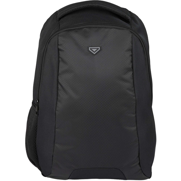 The main compartment includes a padded laptop sleeve to protect your device, while a side pocket keeps a water bottle within easy reach.