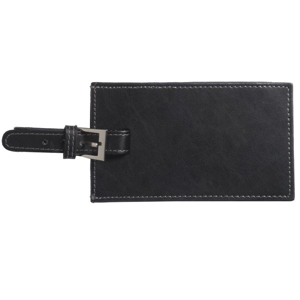 - Bonded Leather luggage tag with adjustable strap and silver-tone Zinc Alloy buckle