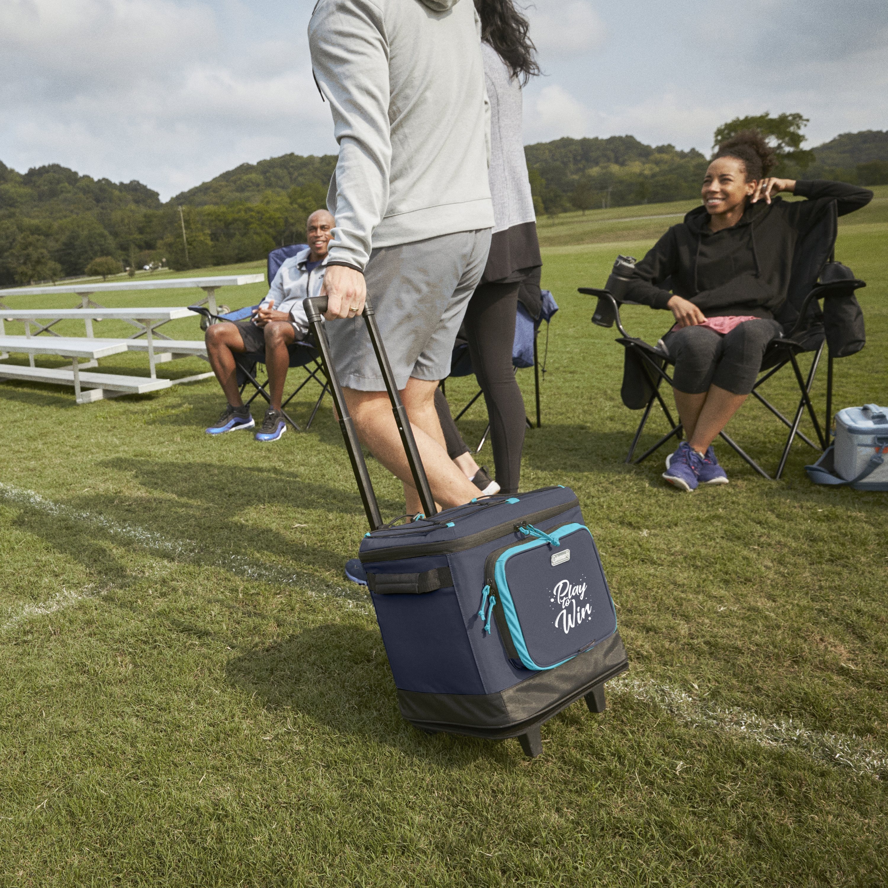 Add some convenience and fun to your next outdoor adventure with products from Coleman! Wheels and a telescoping handle make this rolling cooler easy to haul to and from your next tailgate party, annual family picnic, or kid's soccer game. The front pocket expands to fit all your gear, and the stretch side mesh pocket easily fits a water bottle and more. The padded top handle lets you carry the cooler comfortably even when packed to the brim, and a bungee cord offers additional space for a jacket or blanket in case you need to bundle up.