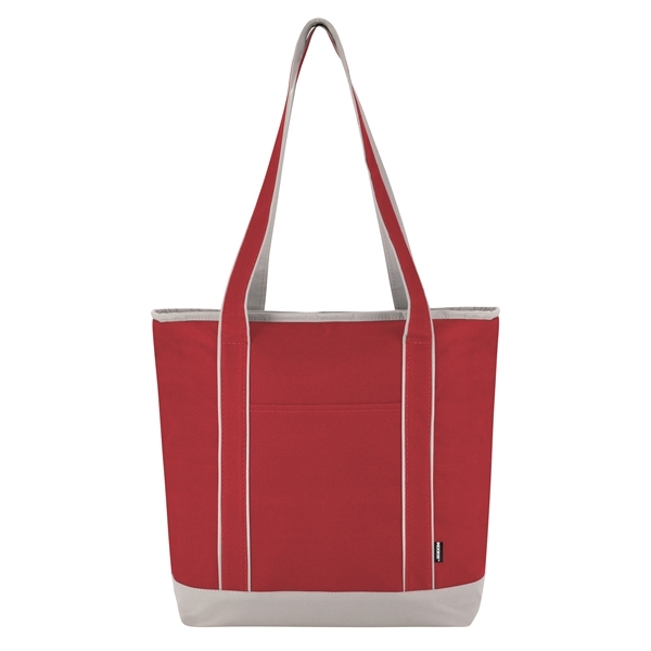My staff LOVES this tote. It is very large and perfect for multi use things. We have some use it as a cooler others use it as theyir tot for books and papers and others use it for lunch.