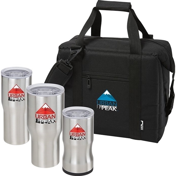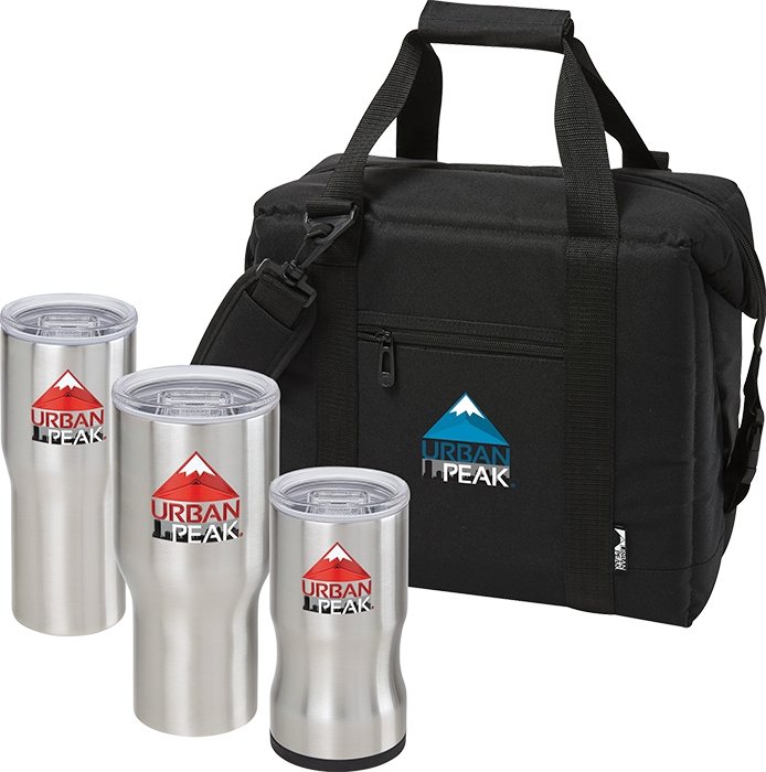 Includes the 12 oz 3-in-1 Insulator, 20 oz Vacuum Tumbler, 30 oz Vacuum Tumbler and the Cube 24 Can Cooler Bag