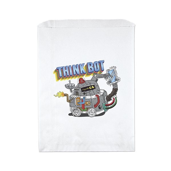 Unlined white or recycled brown kraft paper Merchandise Bag features a serrated top, pinch bottom, and no gusset.