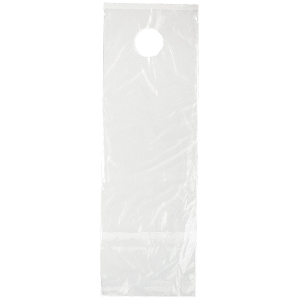 clear plastic bag has a 1 1/2" diameter hole that fits around standard doorknobs.