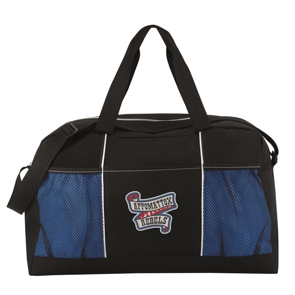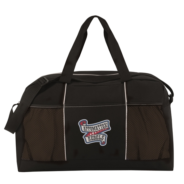 This duffel has what you need to hit the gym in style. The main zippered compartment has plenty of room for your clothes and the front slip pocket and mesh pockets provide room for additional items.