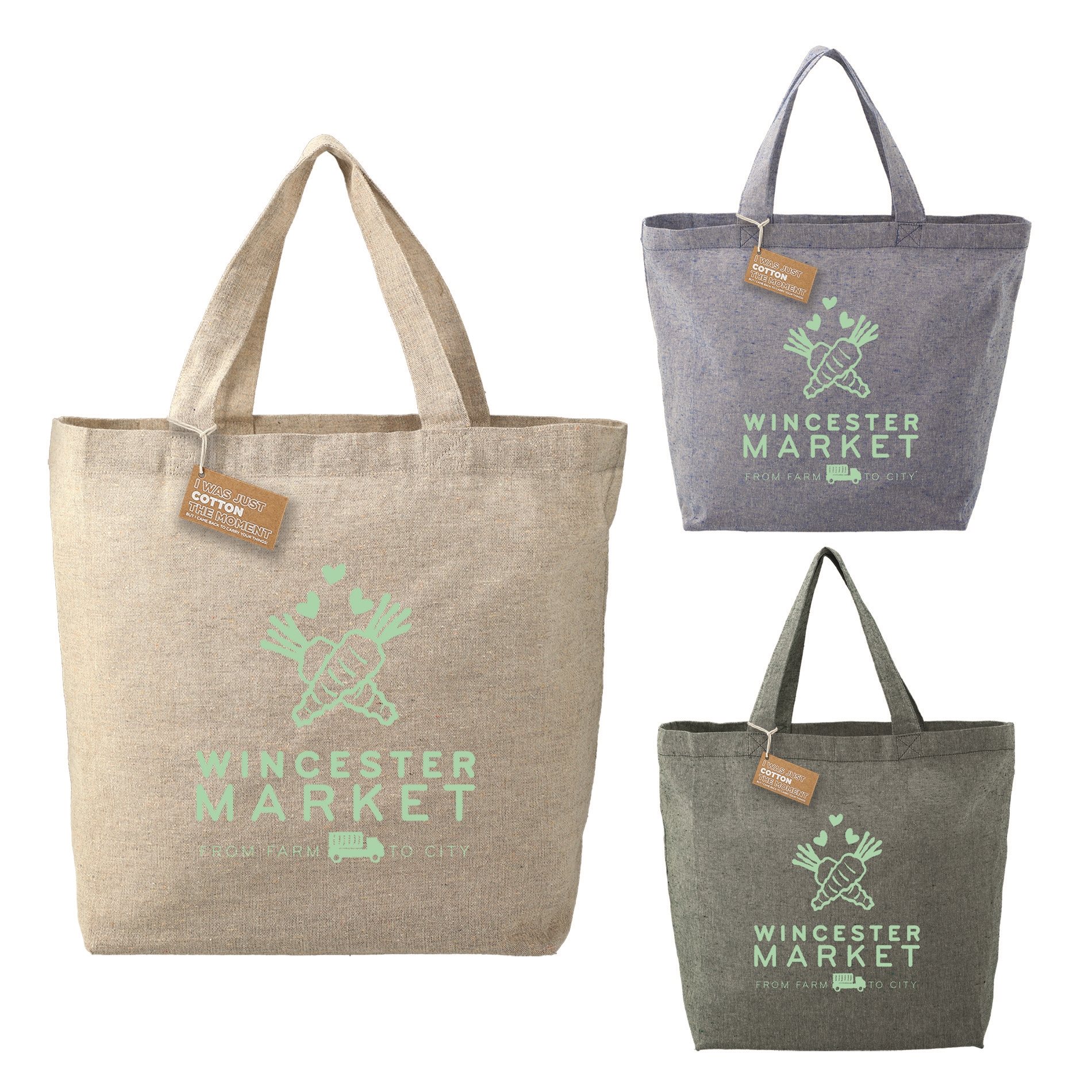 Happy with the totes overall! Clear graphics, quick shipping and receiving. They have a hard bottom which I was not expecting and are a little smaller than I anticipated. Overall, very happy with the decision and will suite our needs well.