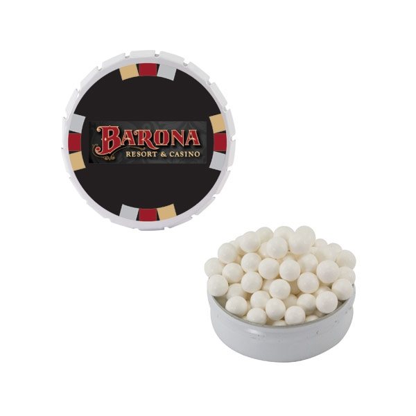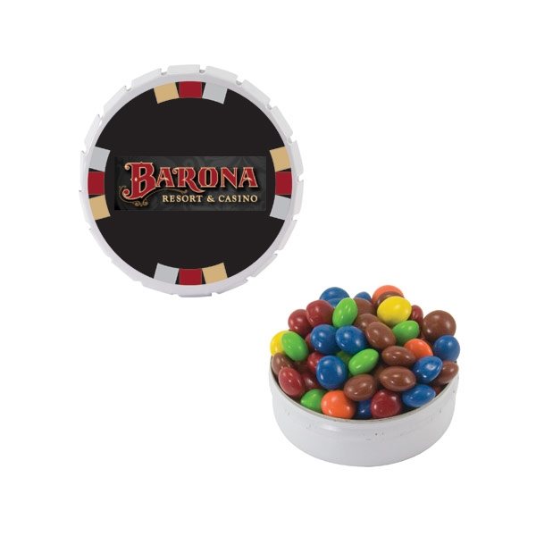 Unique Snap-Top Tin Filled With Your Choice Of Mints, Candy, Chocolates or Gum