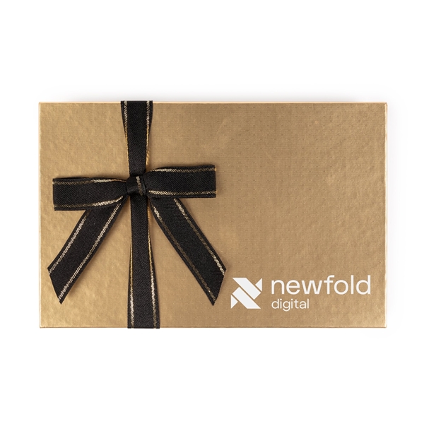 - The decadent Sea Salt Caramels sit in a checkered pattern inside this elegant metallic gift box with matching stretch bow.