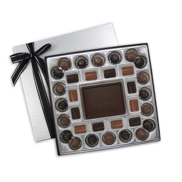 Large enough for a group or a deserving individual; this custom gift box is filled with delicious combination of milk and dark chocolates.