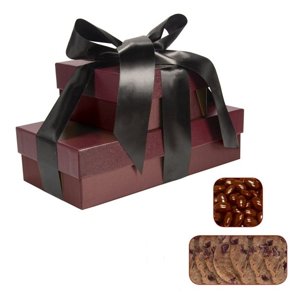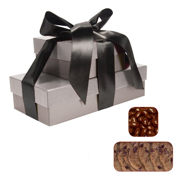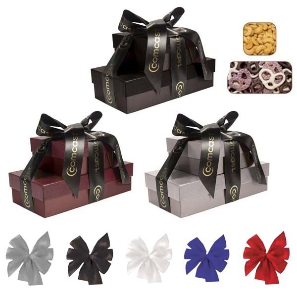 Two Tier Treat Tower Features An Executive Box And A Classic Single Box With Your Choice Of Filler & Ribbon