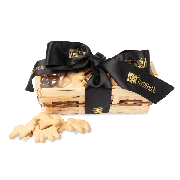 Bring a touch of nostalgia with our gift basket featuring Animal Crackers! Packed with 3.6 oz of Animal Crackers and a custom imprinted ribbon in your choice of colors – perfect for adding a personal touch to your gifts