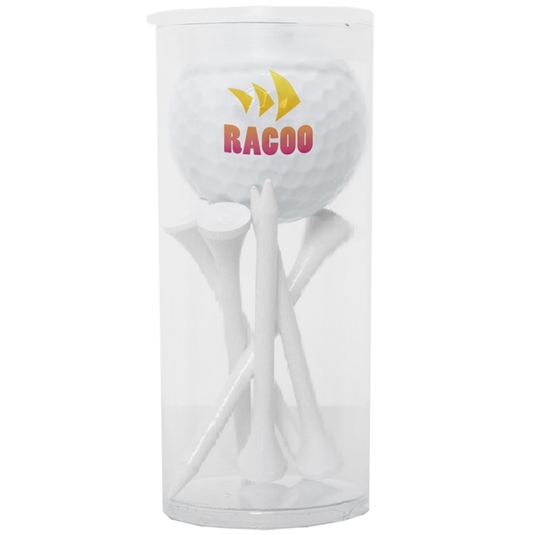 Perfect for golf events and trade show giveaways, this economical kit includes a customized white golf ball and 5 blank 2-3/4" white wood tees. Everything comes packaged in a clear tube.