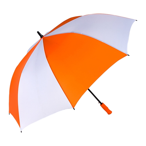 No matter the weather, Shed Rain has you covered. A little rain won't stop the fun on the links if you have this automatic-open 58" arc umbrella nearby. Features include a black electrostatic steel shaft, an EVA cushion grip handle, and an FRP fiberglass rib construction that offers a significant increase in the durability and life of the umbrella.