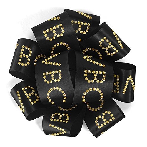 Each bow can be personalized with text or a logo and comes with a convenient peel-and-stick backing for easy application.