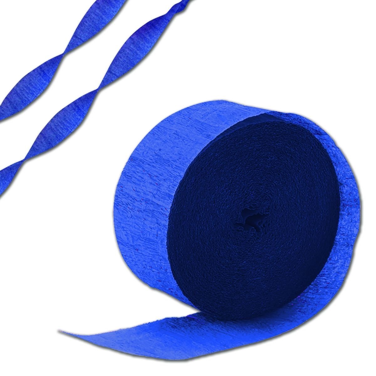 Our royal blue crepe paper streamer roll is 81 feet in length and sold by the roll.