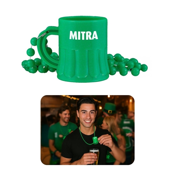 These 1oz shot glasses look like mini beer mugs and include a matching beaded necklace.