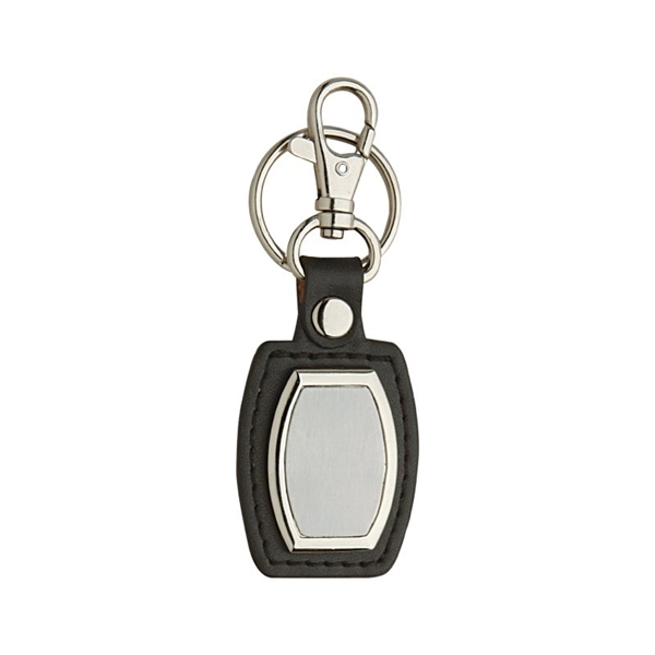 Synthetic leather strap and keytag.