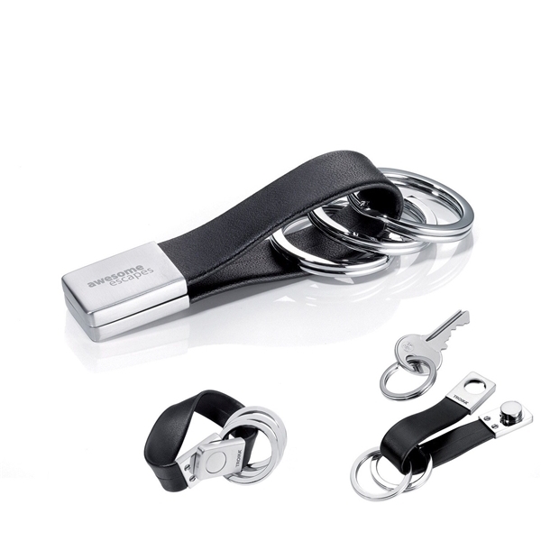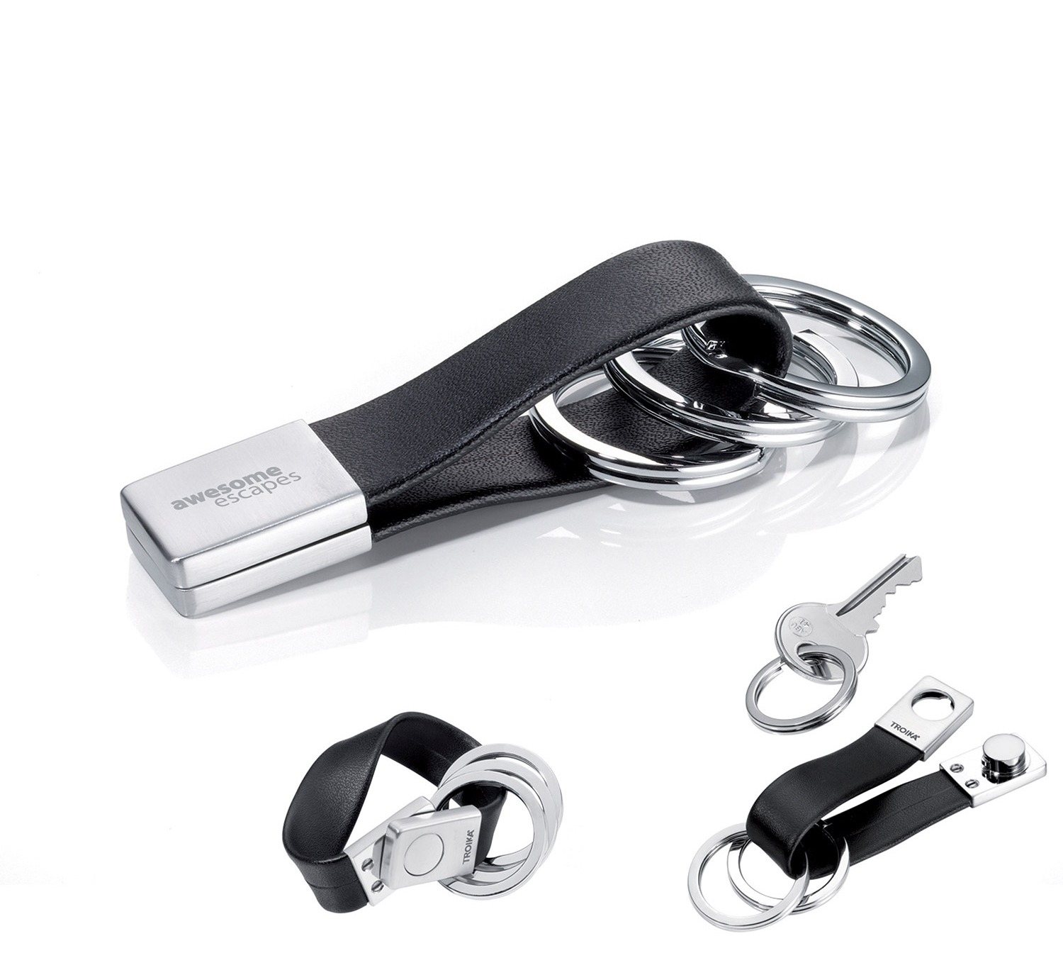 One of their innovative creations is the twist-open valet keychain, crafted from genuine black leather with chrome-plated nickel trim.