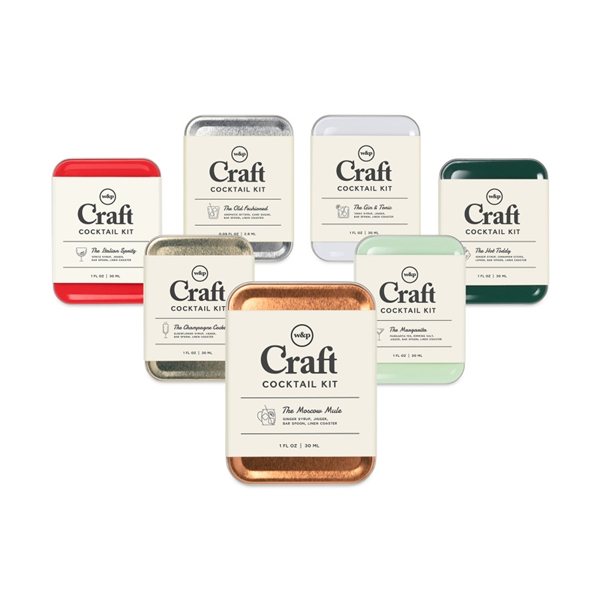 This assortment of W&P Cocktail Tin Kits is sold bulk and blank no deco. Kick start a promo, great for a celebration or thank you, add to a swag gift or use as an event favor. No decoration included. Each Craft Cocktail Kit contains all the premium ingredients needed to create 2 Cocktails wherever you are - just grab your spirit of choice and mix it up.