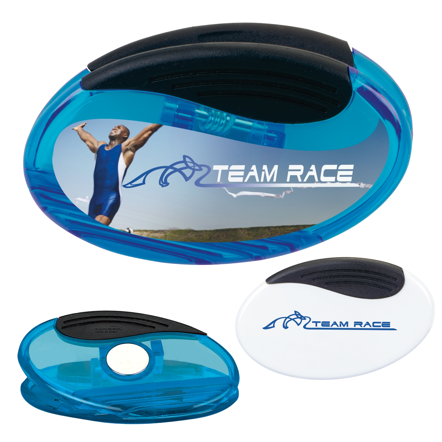 A fun take on a household staple, this oval magnetic clip has so many uses. The black rubber grip at the top makes it easy to open and close.