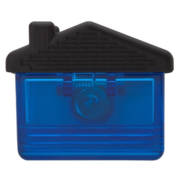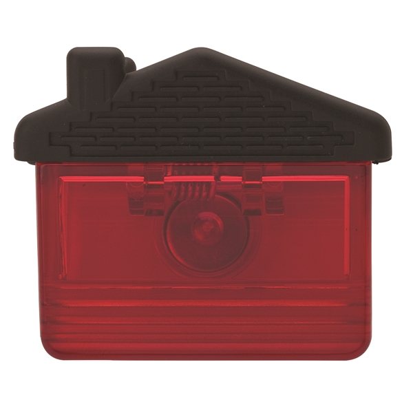 House shaped plastic memo clip holder with magnet.