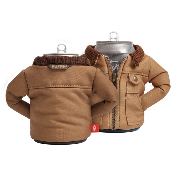 The Detroit Can Cooler, by Puffin Drinkware is built with real cotton duck cloth for workwear-grade durability, finished with a corduroy collar for that rugged-meets-refined edge