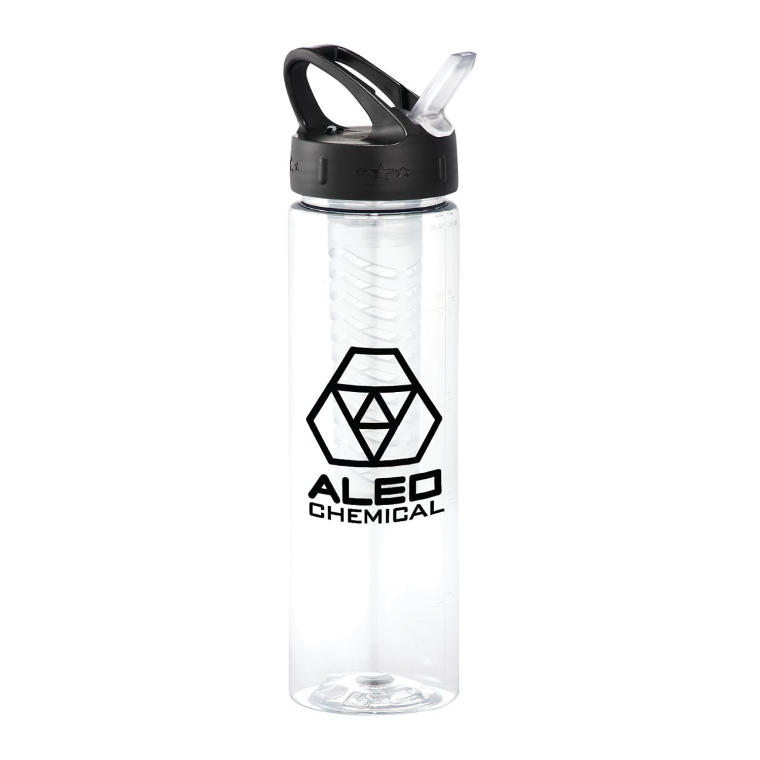 It includes a twist-on fruit infuser lid to add flavor to your favorite drink, plus convenient ounce markings printed right on the bottle for easy measuring.