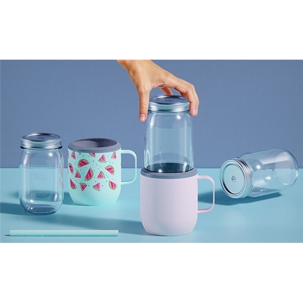 Garyline® 27 oz Tritan™ Clear Mason Jar with Translucent Colored Handle, Lid and Straw