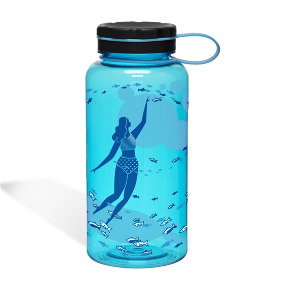 34 oz single wall [BPA-free] Eastman Tritan copolyester bottle with threaded lid and carrying handle · for cold beverages only