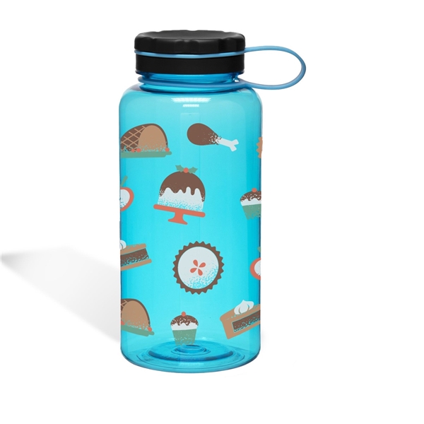34 oz single wall [BPA-free] Eastman Tritan copolyester bottle with threaded lid and carrying handle · for cold beverages only