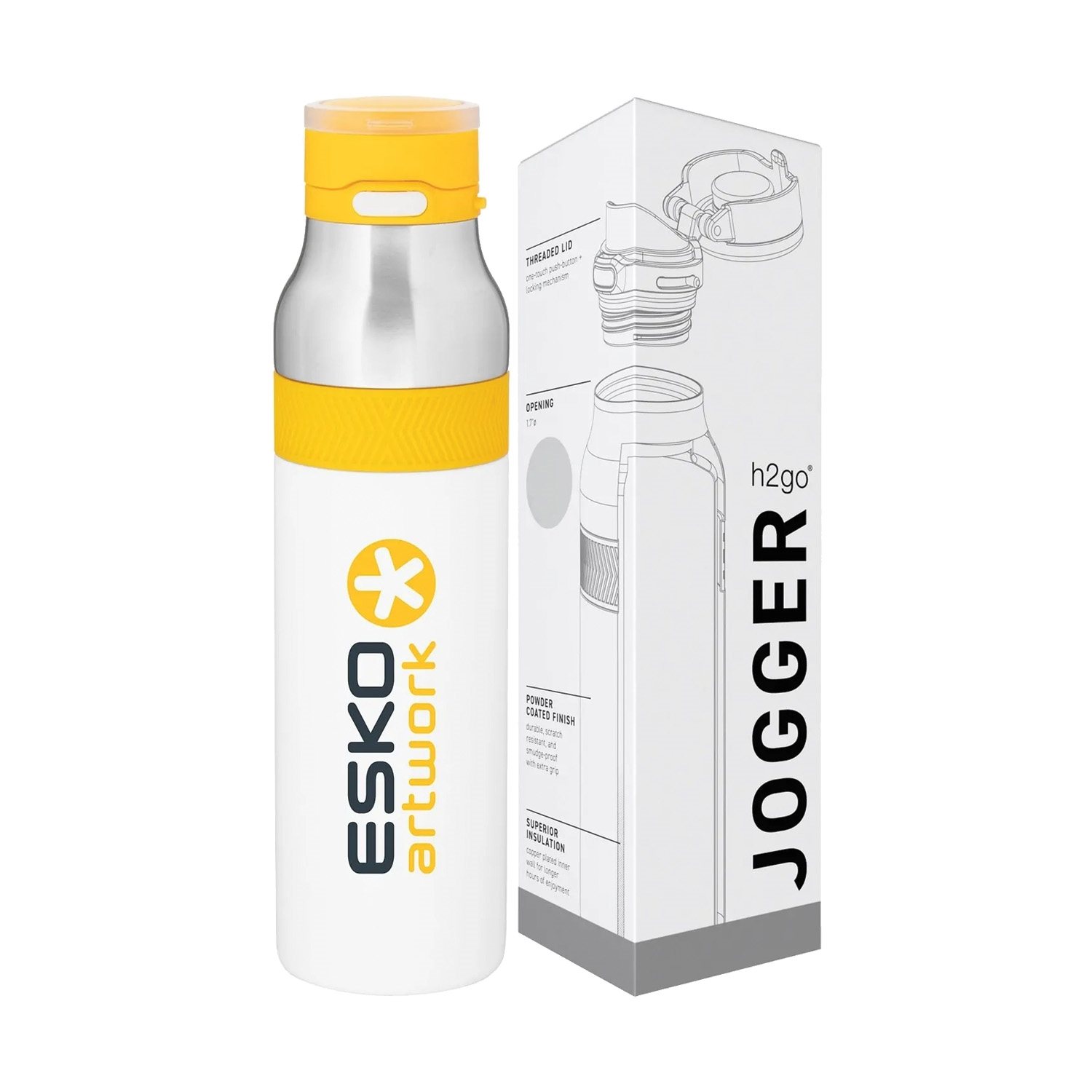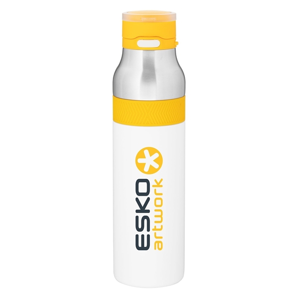 • 20.9 oz double wall 18/8 stainless steel thermal bottle with copper vacuum insulation, threaded one-touch push-button lid with locking mechanism, carrying handle, color accent, and powder coated finish · gift box included