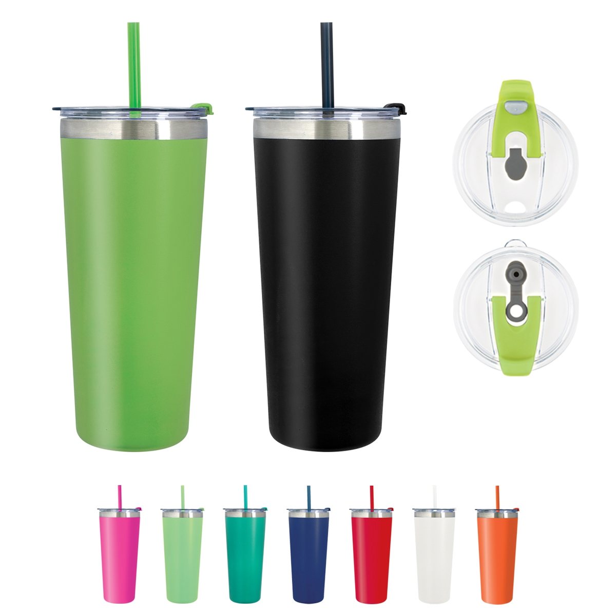 Snap-On, Spill-Resistant Flip Top Lid with Straw Hole And Matching 9 1/2" Straw