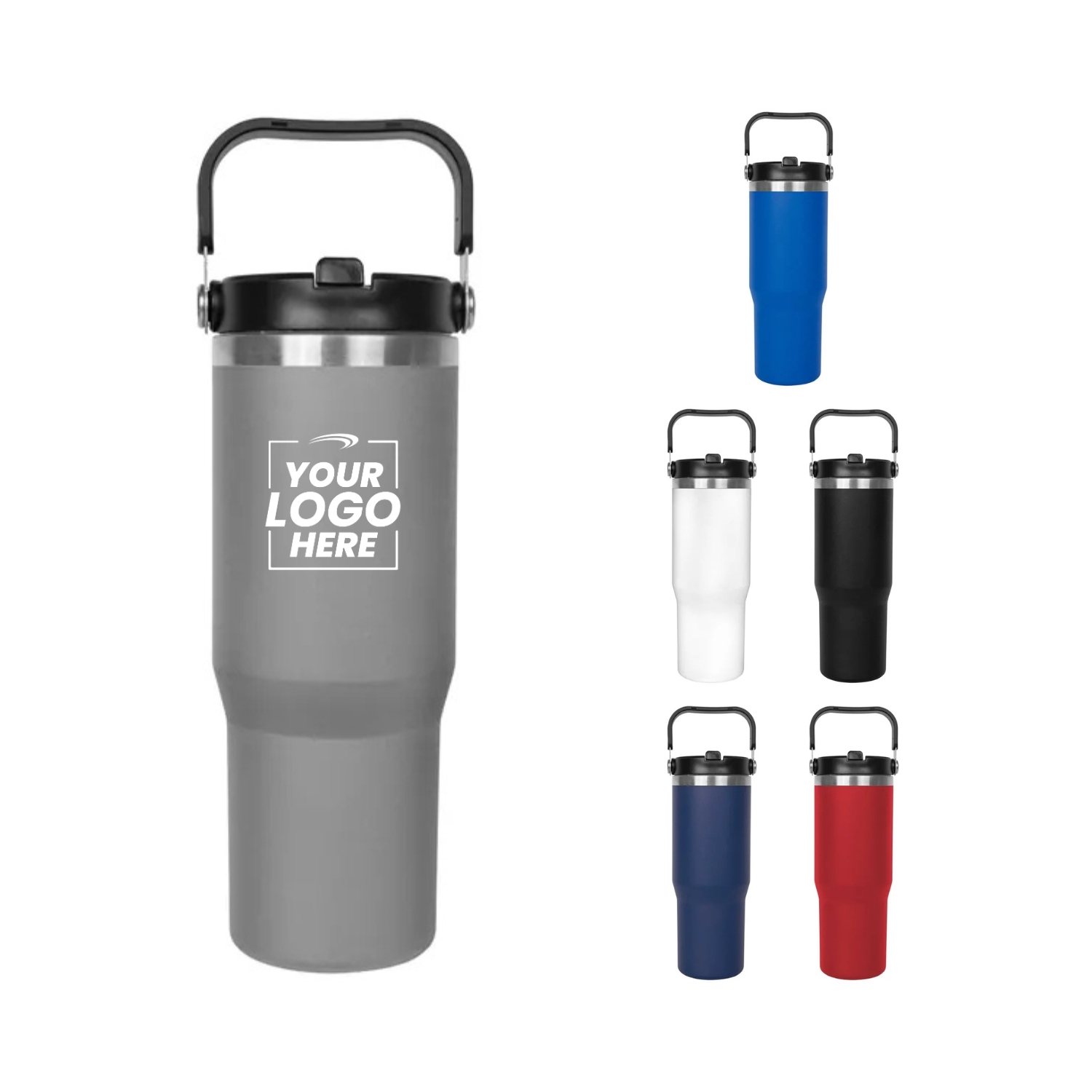 30oz. Stainless Steel Insulated Mug with Handle and Built-In Straw