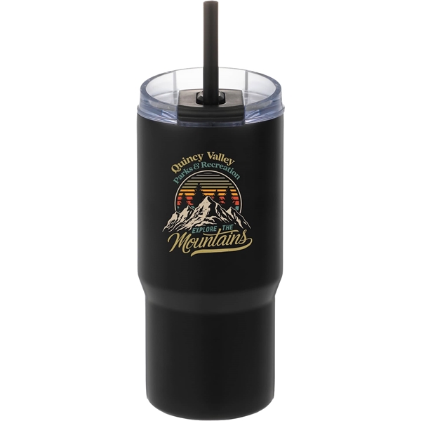 The Auxo 24oz Tumbler with straw features durable double-wall construction with vacuum insulation to keep your beverages hot or cold in any environment.