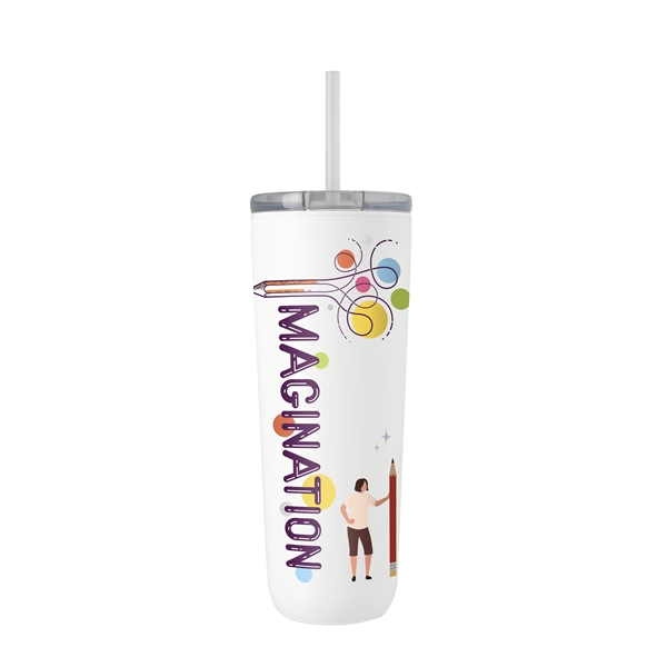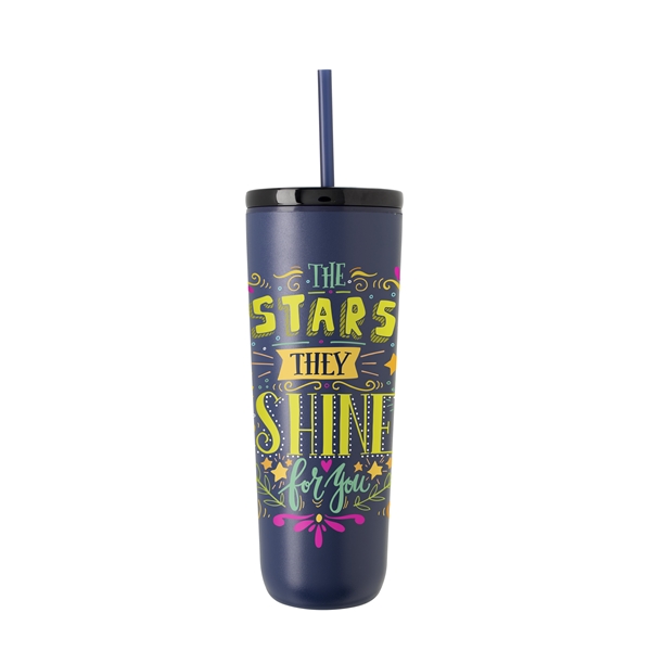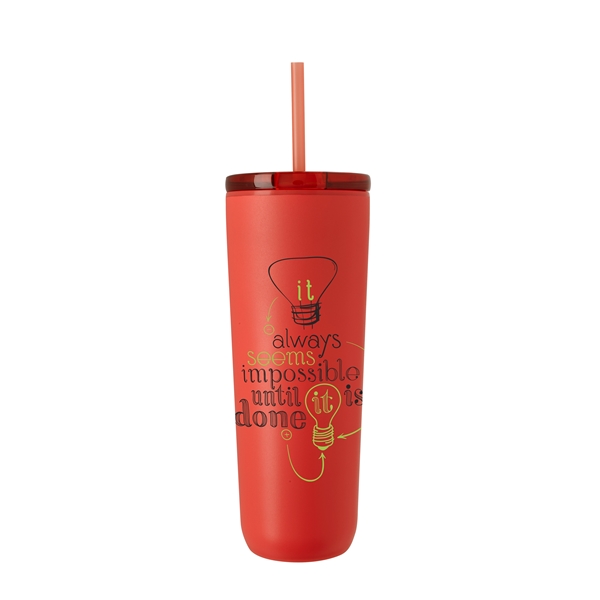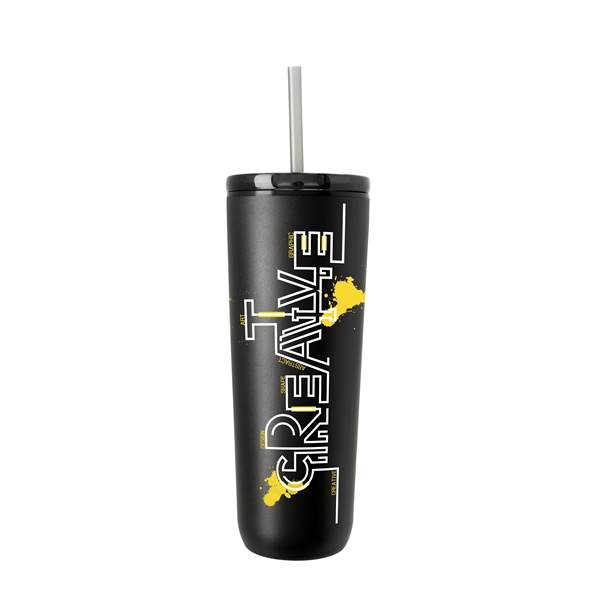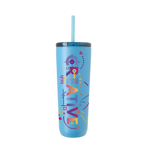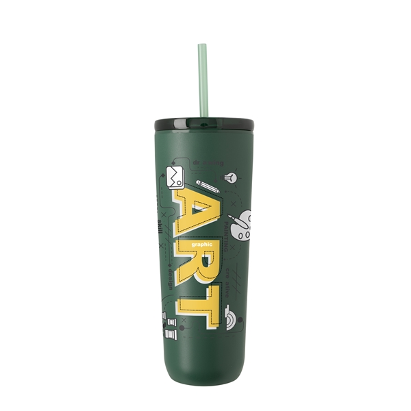 This tumbler is crafted from 90% post-consumer recycled stainless steel and lined with 100% post-consumer recycled plastic for a design that’s as sustainable as it is durable. The powder-coated finish adds long-lasting style, while the 100% post-consumer recycled push-on lid with slide closure and matching straw helps prevent spills on the go. With a single body, lid, and straw color, this on-the-go cup reflects a modern style that seamlessly blends sustainable materials with everyday convenience.