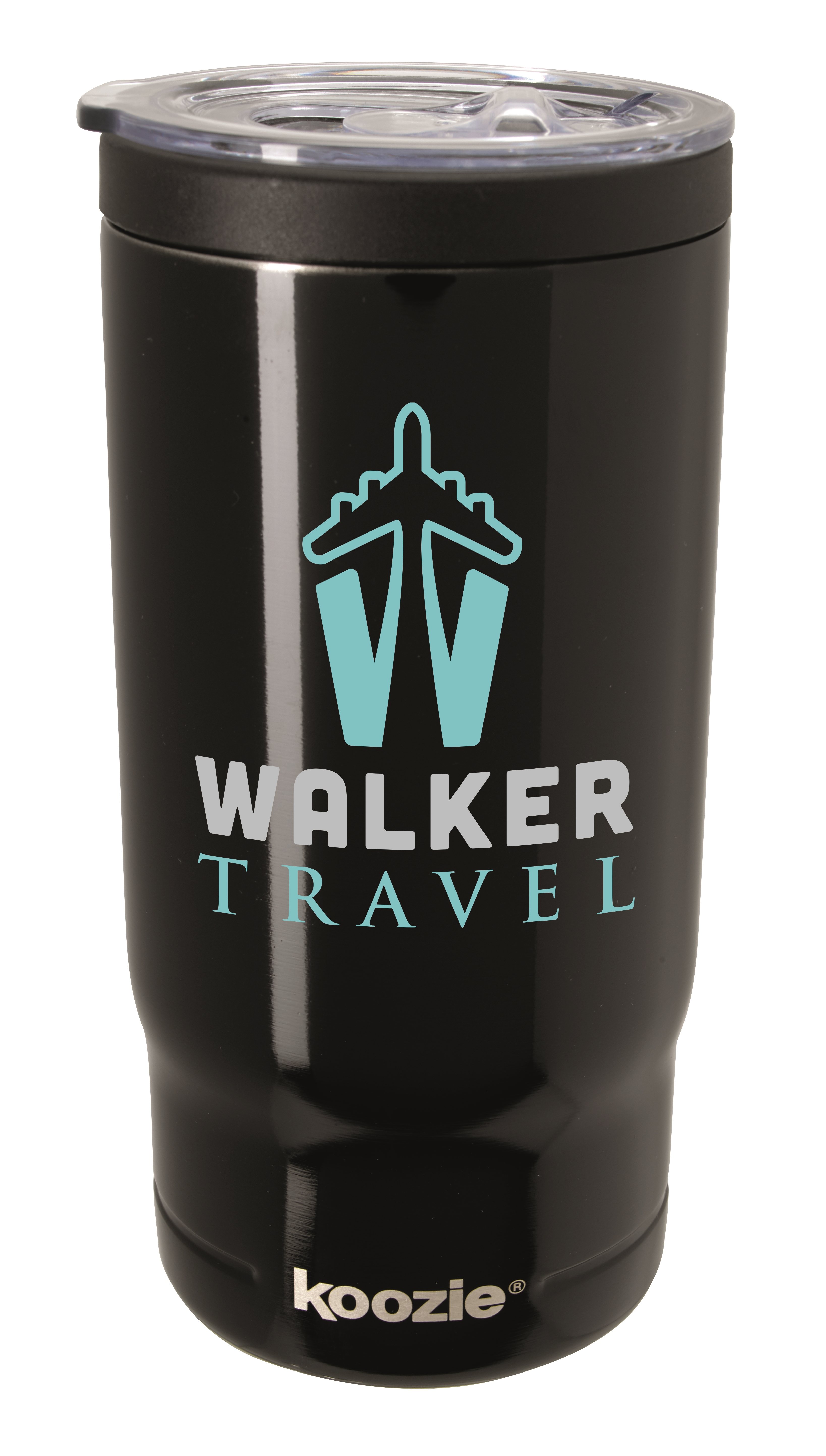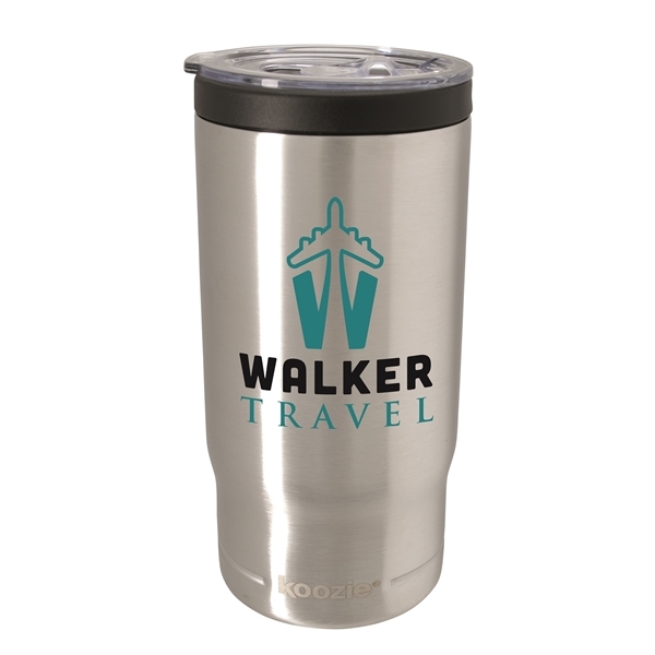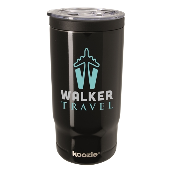Use the multifunctional Koozie® Triple Vacuum Tumbler as you like! With just the screw-on black ring, this workhorse holds a bottle or a 16 oz can. Drop in the clear spill-resistant plastic lid, and you have an on-the-go tumbler for your coffee or ice-cold drink.