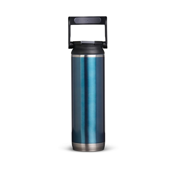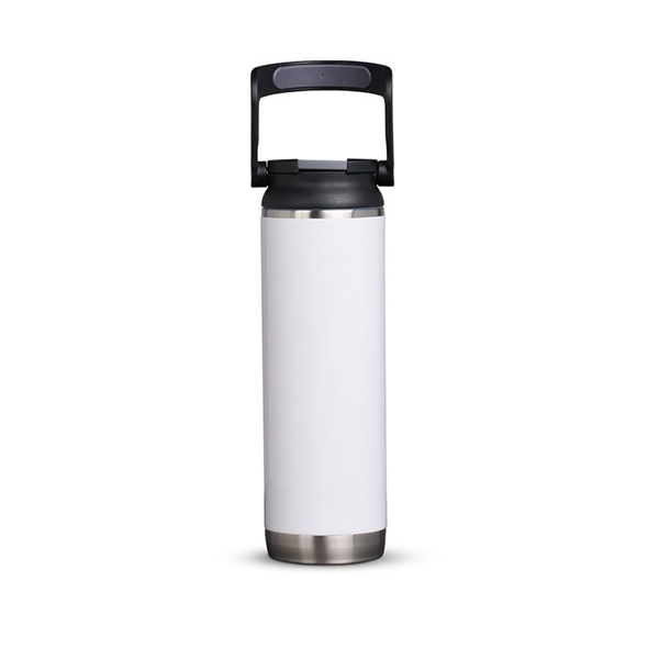 It features a leakproof threaded lid with touch-free flap lift to keep your drinking straw clean, a thumb grip indent for a comfortable hold, and the form hugging swing handle makes the bottle sleek, easy to store and easy to carry.