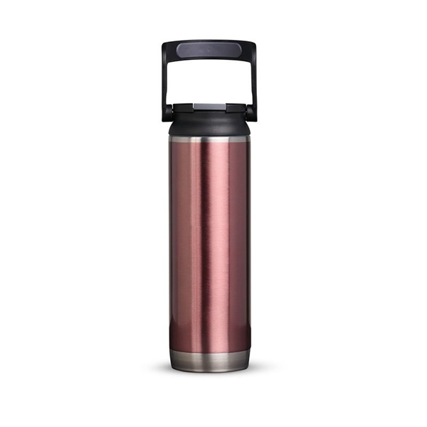 This bottle is made of 18/8 food-grade stainless steel and will keep drinks hot for 12 hours and cold for 24 hours.