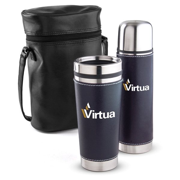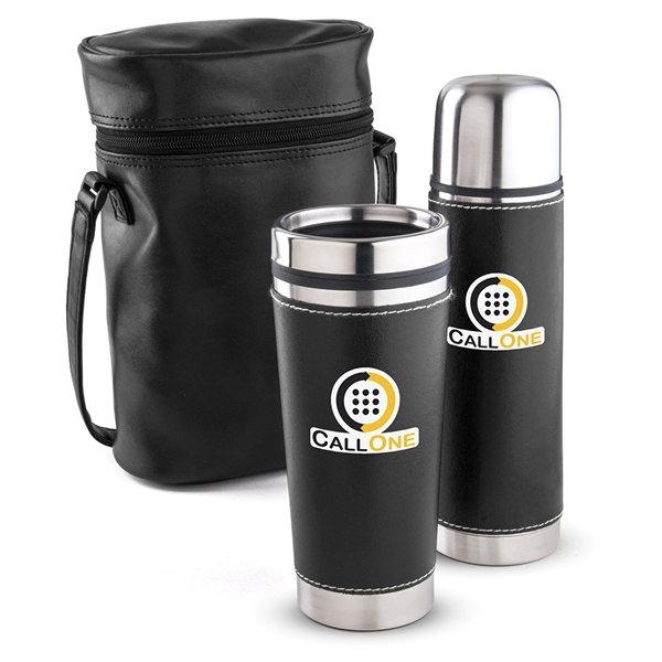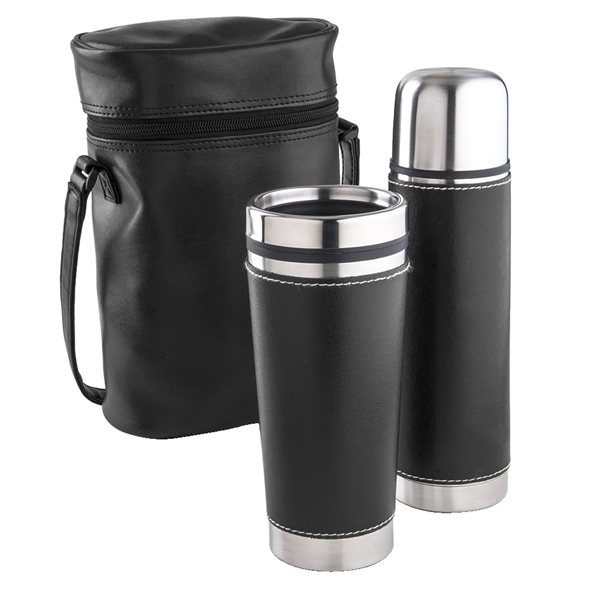 About this Leatherette Tumbler / Vacuum Bottle Set: