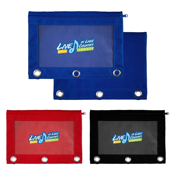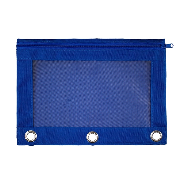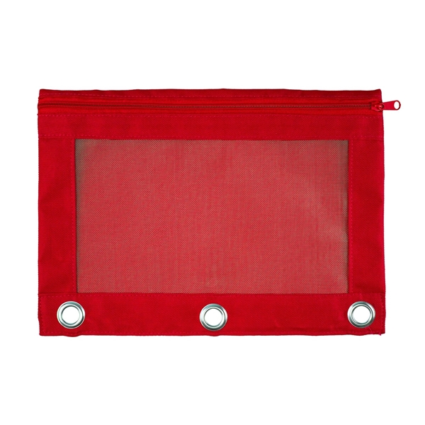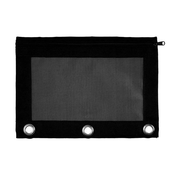 Mesh storage bag with zip closure and holes for 3-ring binder