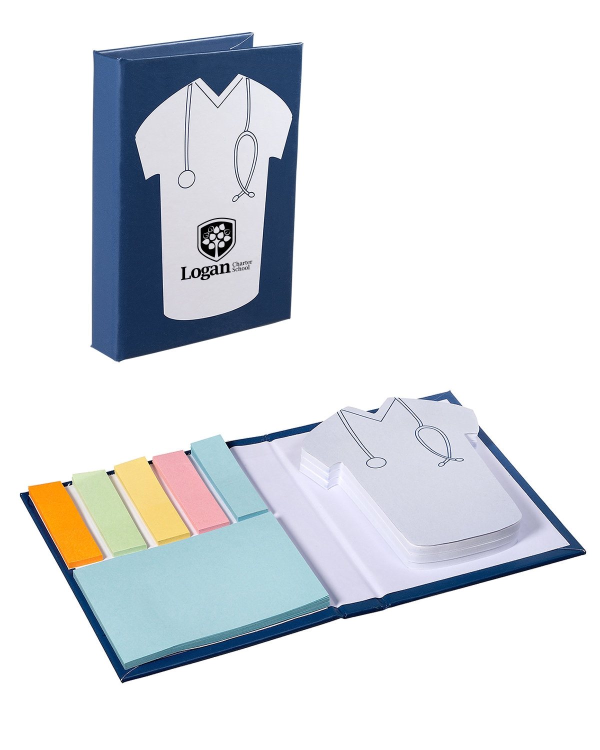 People really liked the scrub top post-it notes. The scrub top bottom is narrow which isn't readily apparent in picture, it's about 1 3/4" Armpit to armpit measures 2" Diameter of shirt right at bottom of stethoscope is 1 7/8", about 1/8" shy of 2" From the bottom of the bell of the stethoscope to bottom of shirt is again about 1 7/8" Clear writing area on scrub top is less than 2"x2" Some of the flags and/or rectangular sticky pad have fallen off during transport although they were well packaged. Easily re-attached with double-sided tape. It's fun novelty gift.